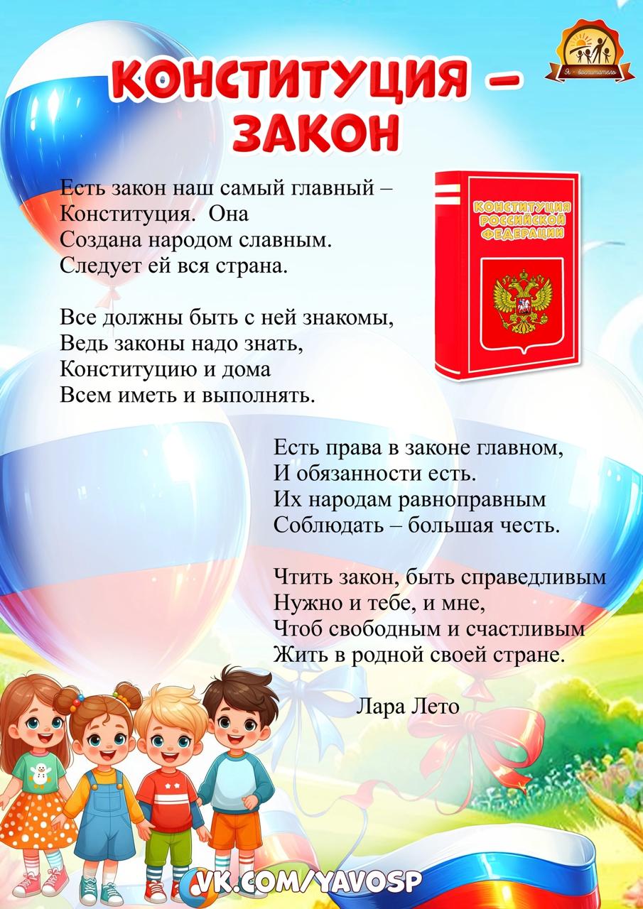 Сегодня День Конституции Российской Федерации! Большой праздник для всех нас! Желаю каждому ощущения значимости, свободы и возможностей. Светлых идей, прекрасной жизни, полноценной реализации и красочных событий, наполняющих душу положительными ...